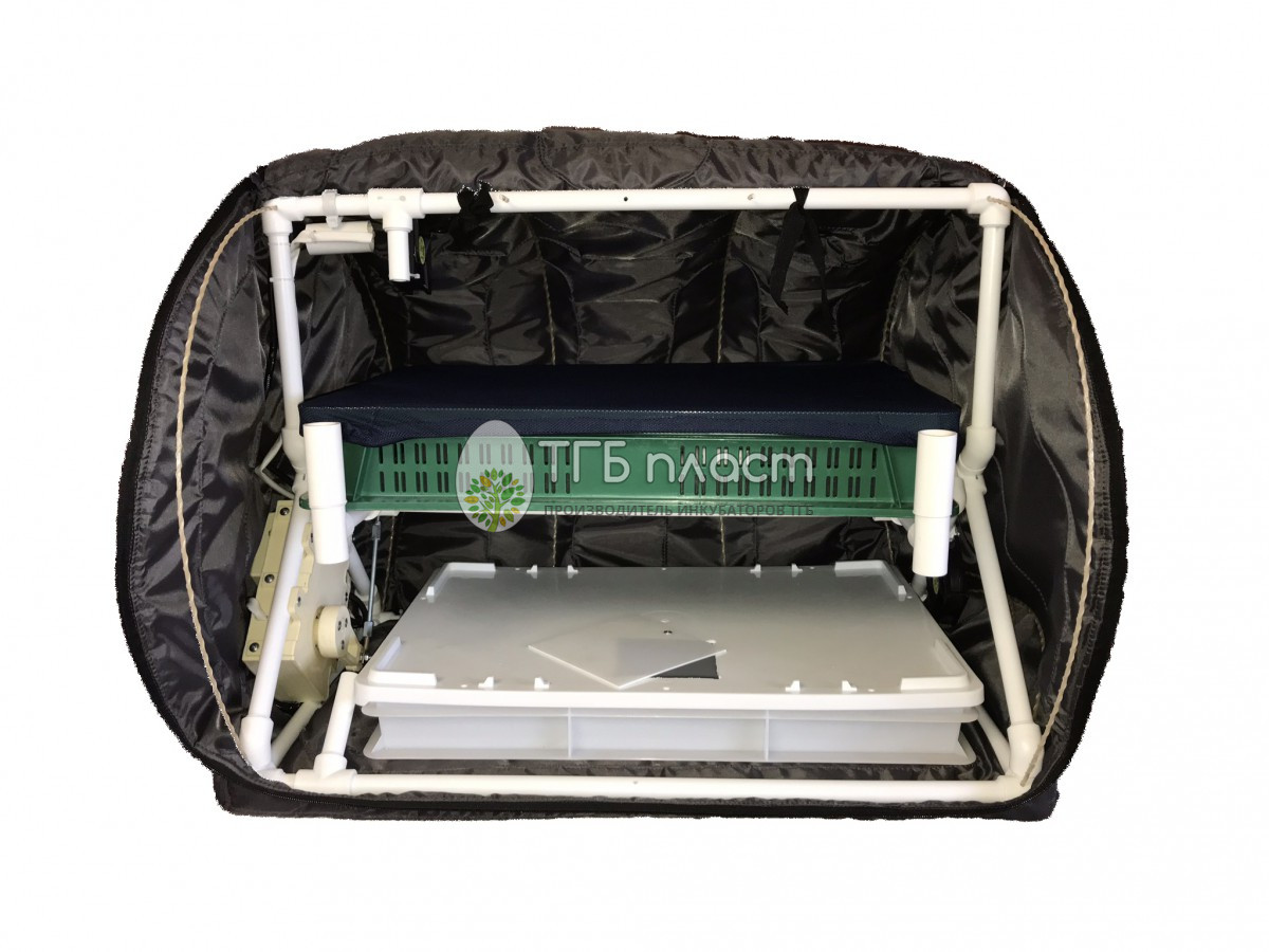 Преимуществом ТГБ-пласт является автоматическое поддержание влажности и очень точное поддержание температуры, легкая и прочная конструкция, высокие лотки, что очень удобно для инкубации и вывода птенцов. Новый эргономичный прибор и новая система привода поворотной кассеты с лотками на основе кривошипно-шатунного механизма, в движение которую приводит редуктор с высоким тяговым усилием.