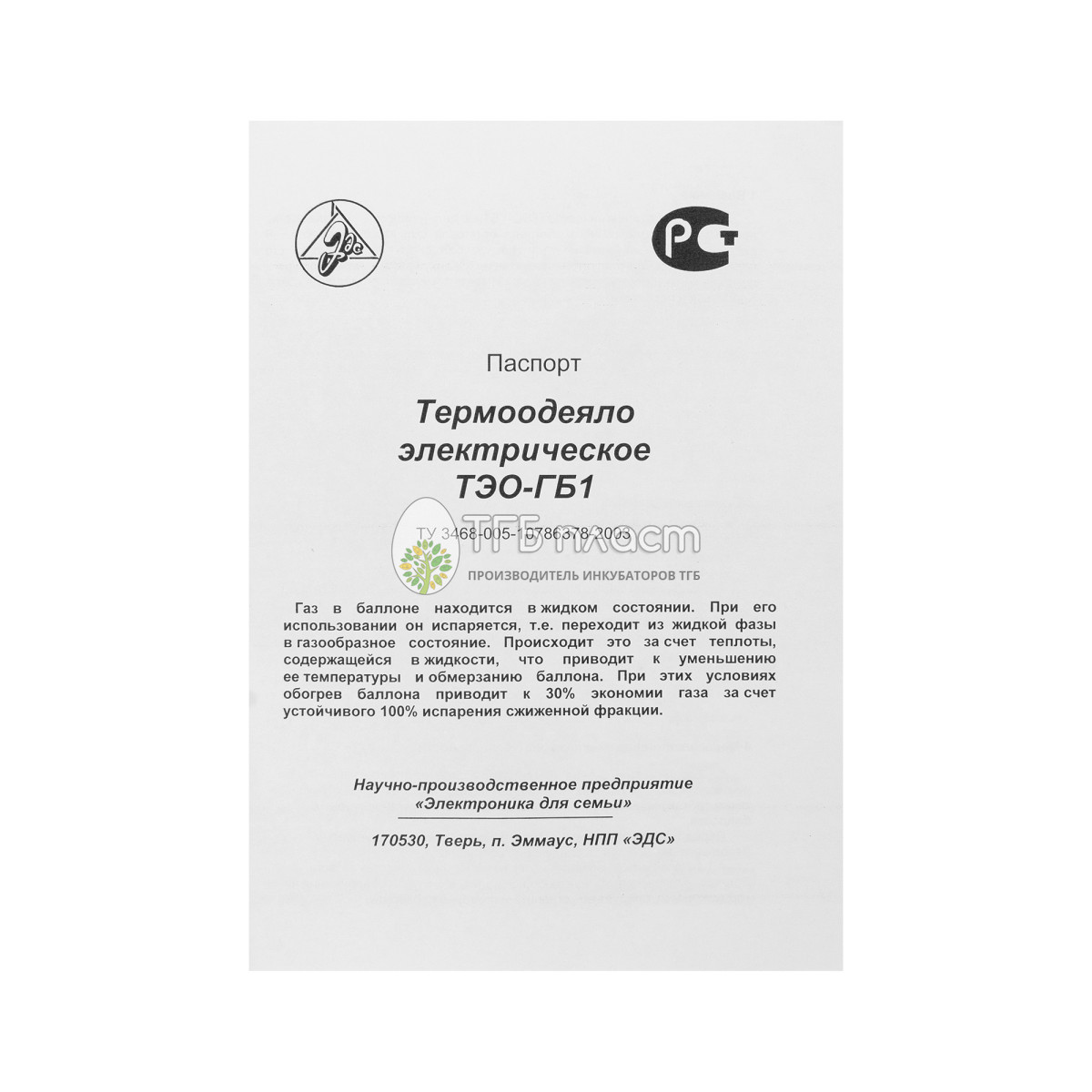 Изделие, размером с газовый баллон объёмом 50 литров, изготовленное из плотной прочной ткани (в несколько слоёв) с удобными застёжками на липучках и шнуровкой, оборудованное системой электроподогрева – это и есть термоодеяло ТЭО-ГБ1. Оно полностью покрывает баллон, обеспечивая его теплом в холодное время года. Для удобства эксплуатации одеяла в его комплект входит чехол.